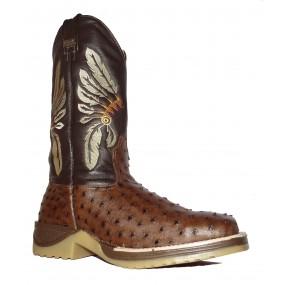 Bota de Avestruz Cheio Conhaque - Cano Médio, Bico Quadrado