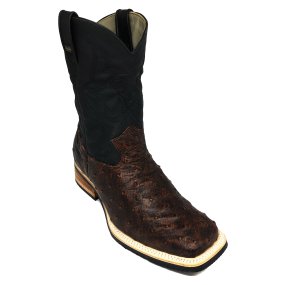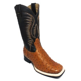 Bota de Avestruz Cheio Conhaque - Cano Médio, Bico Redondo, SOLADO X-FLEX ARTESANAL
