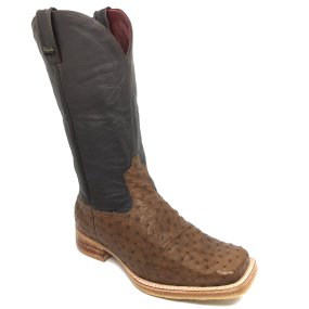 Bota de Avestruz Cheio Laranja - Cano Alto, Bico Quadrado, Solado S-Flex Artesanal