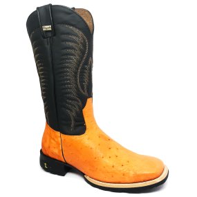Bota de Avestruz Cheio Laranja - Cano Curto, Bico Quadrado, Solado X-Flex Artesanal