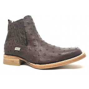 Bota Avestruz Cheio Marrom Café - Cano Médio, Bico Quadrado, Sola Jump