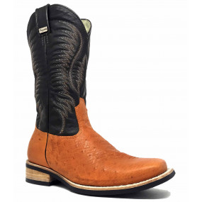 Bota de Avestruz Cheio Marrom - Cano Alto, Bico Quadrado, SOLADO FLEX COMFORT