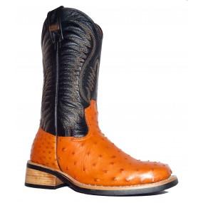 Bota de Avestruz Cheio Marrom - Cano Alto, Bico Redondo