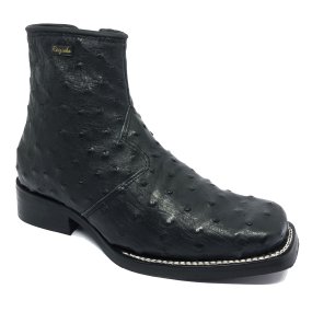 Bota de Avestruz Cheio Pinhão - Cano Curto, Bico Quadrado