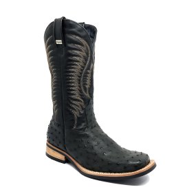Bota de Avestruz Cheio Preto - Cano Alto, Bico Quadrado, Solado Flex Comfort