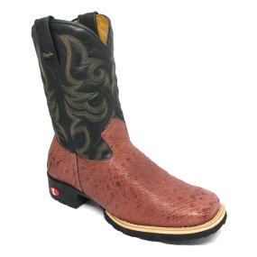 Bota de Barriga Avestruz Laranja - Cano Alto, Bico Quadrado, Solado Flex Comfort