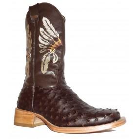 Bota de Couro de Avestruz Cheio BloodWine - Cano Alto, Bico Fino, SOLADO DE COURO ARTESANAL
