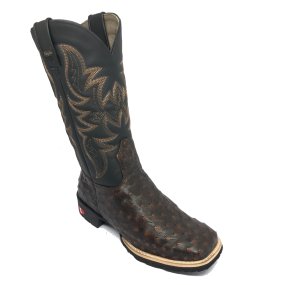 Bota De Couro De Avestruz Cheio BloodWine - CANO ALTO, BICO QUADRADO, SOLADO DE COURO ARTESANAL