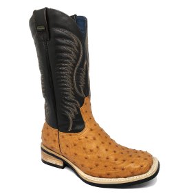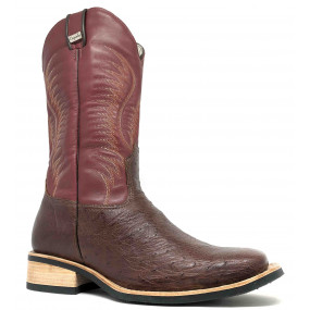 Bota de Couro de Avestruz Cheio BloodWine - Cano Alto, Bico Quadrado, SOLADO X-FLEX ARTESANAL