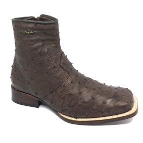 Bota de Couro de Avestruz Cheio Conhaque - Cano Curto, Bico Quadrado, SOLADO X-FLEX ARTESANAL