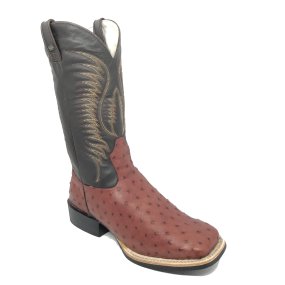Bota de Couro de Avestruz Cheio Conhaque - Cano Médio, Bico Quadrado, SOLADO DE COURO ARTESANAL