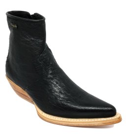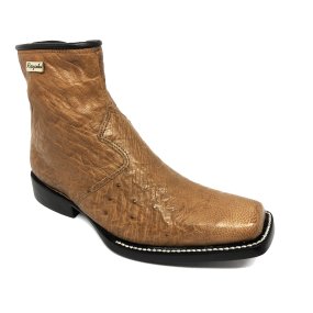 Bota de Couro de Avestruz Cheio Marrom Café - Cano Curto, Bico Quadrado, SOLADO X-FLEX ARTESANAL