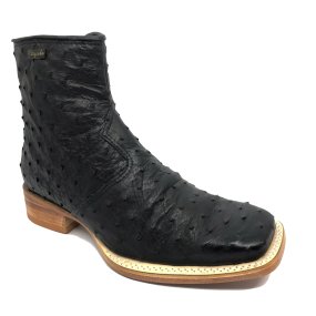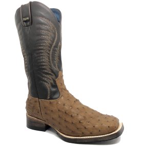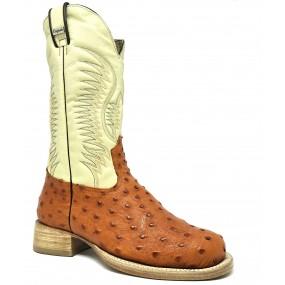 Bota de Couro de Barriga de Avestruz Alaska - Cano Alto, Bico Quadrado, Solado Flex Comfort