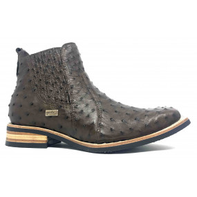 Bota de Couro de Barriga de Avestruz Ice Gray - Cano Alto, Bico Quadrado, Solado Flex Comfort