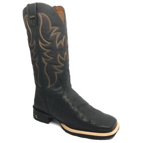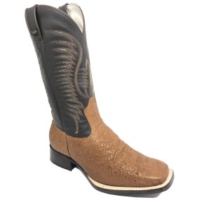 Bota de Couro de Barriga de Avestruz Marrom - Cano Alto, Bico Quadrado, SOLADO X-FLEX ARTESANAL