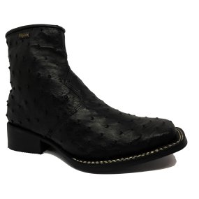 Bota de Couro de Barriga de Avestruz Preta - Cano Médio, Bico Quadrado, Solado Flex Comfort