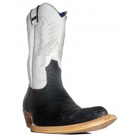 Bota de Couro de Barriga de Avestruz Preto - Cano Médio, Bico Quadrado, Solado Flex Comfort