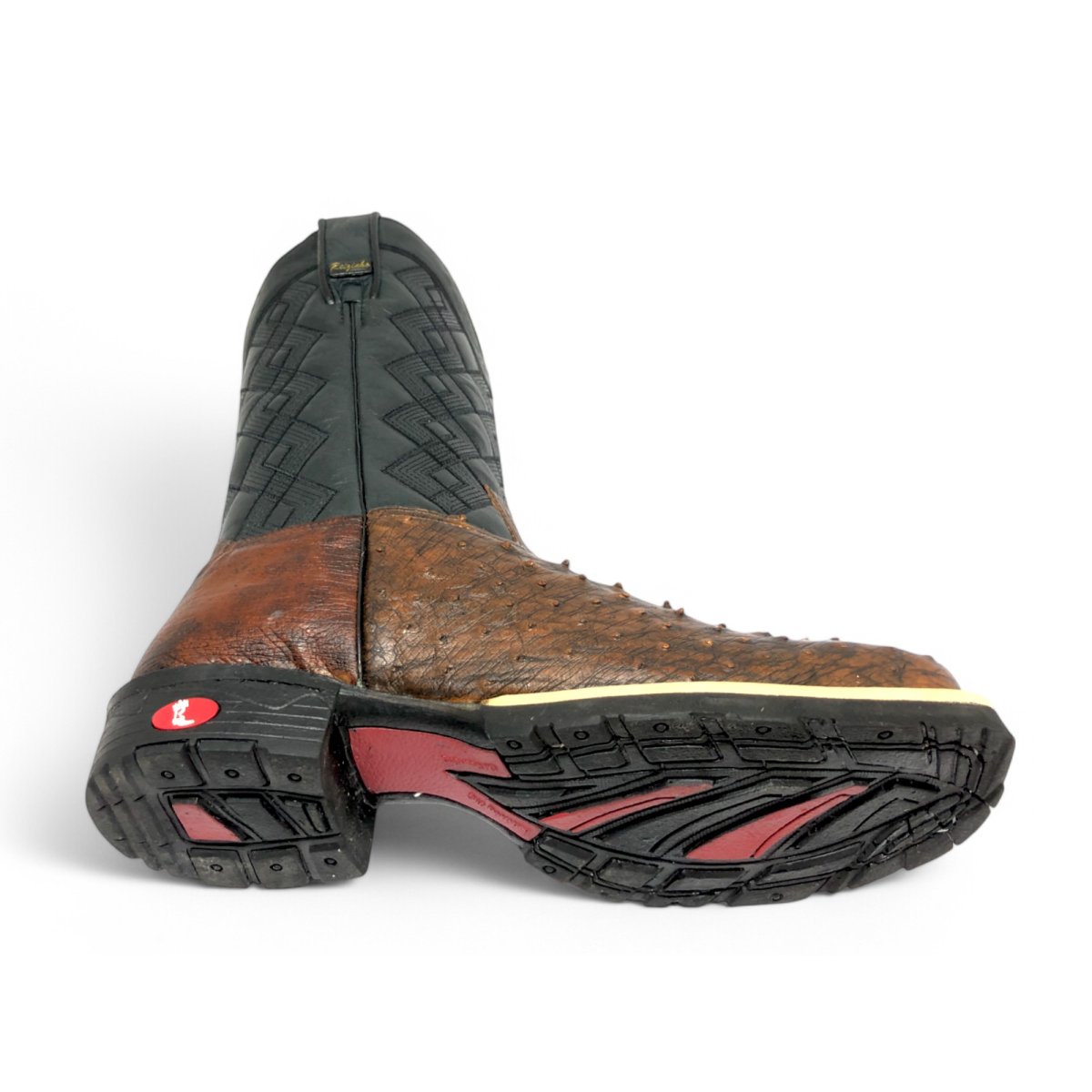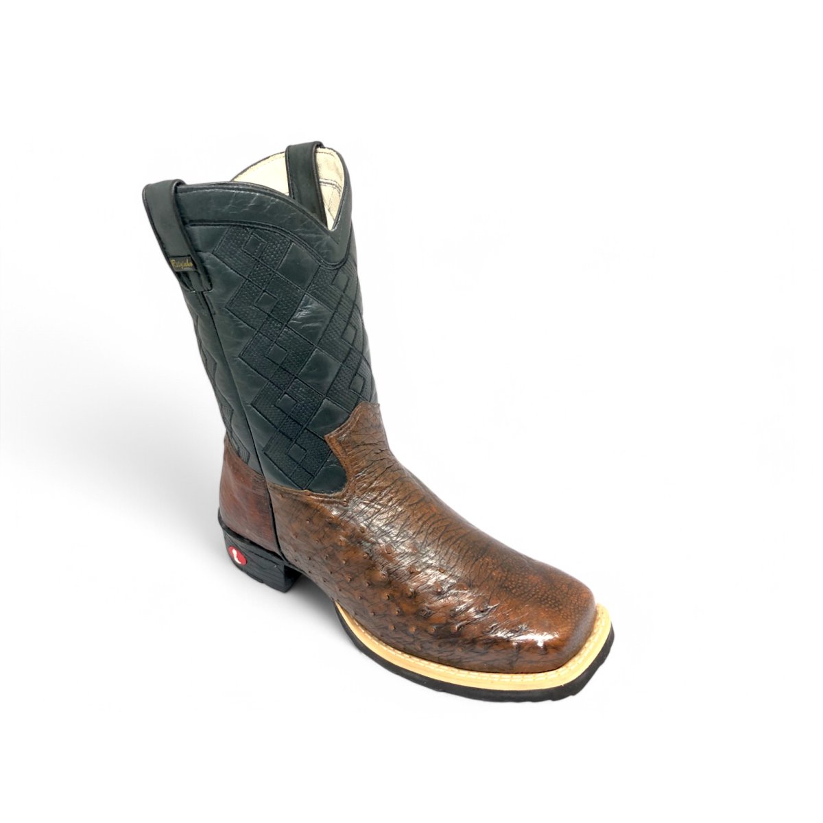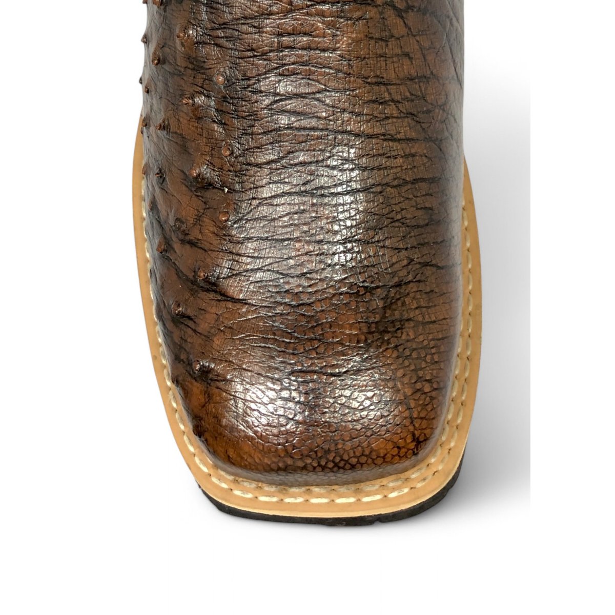 Bota Texana De Couro De Barriga de Avestruz BloodWine Metade Cheio - Cano Médio, Bico Quadrado - Solado Flex Comfort | Reizinho Botas