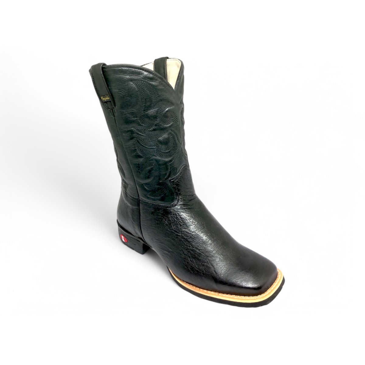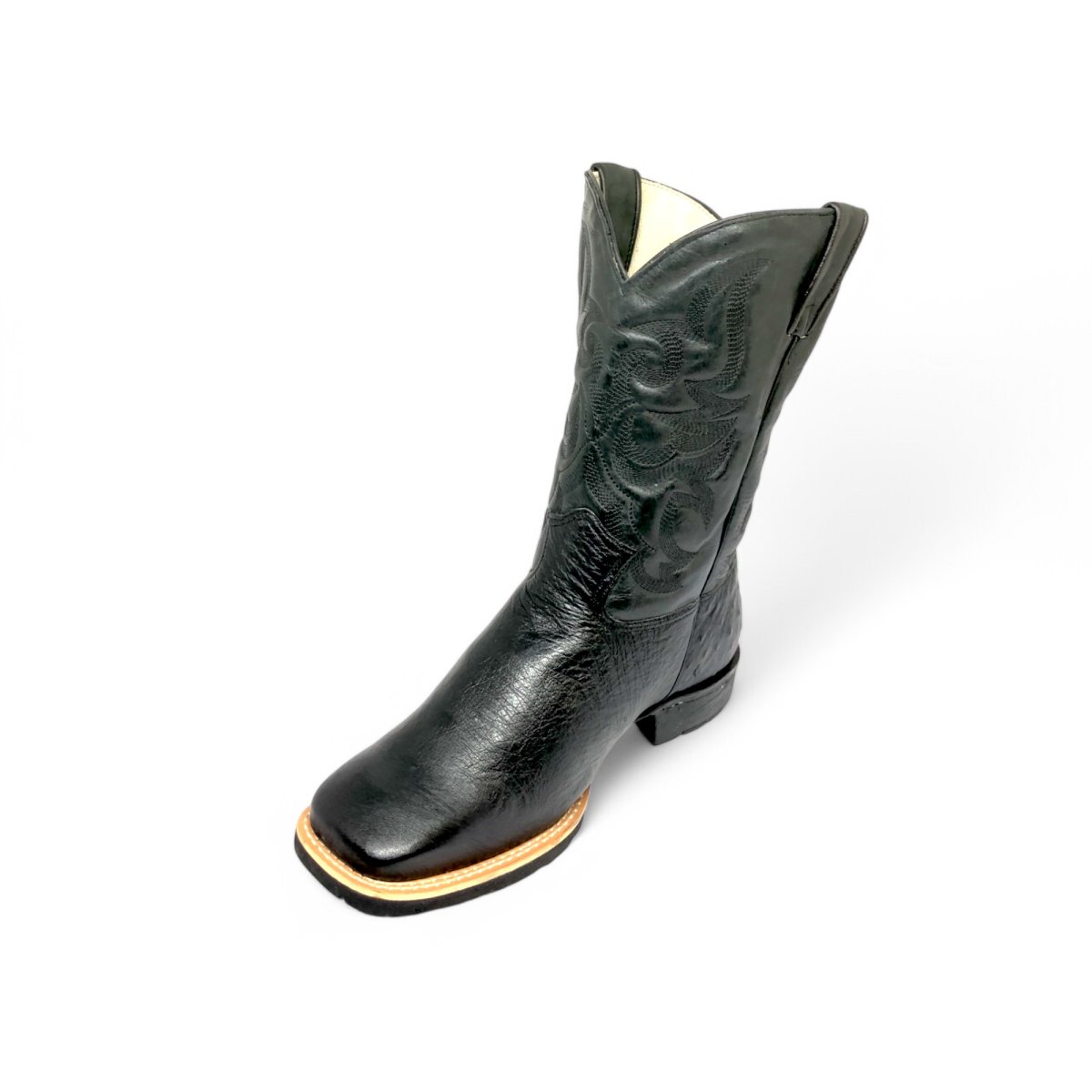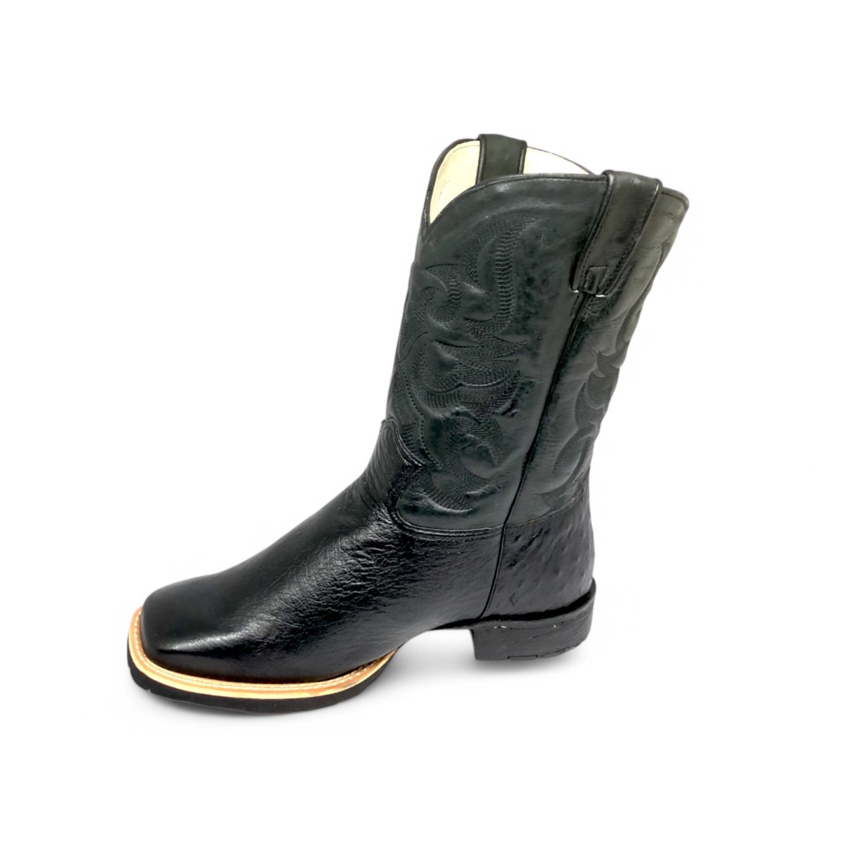 Bota Texana De Couro De Barriga de Avestruz Preta - Cano Médio, Bico Quadrado - Solado Flex Comfort | Reizinho Botas