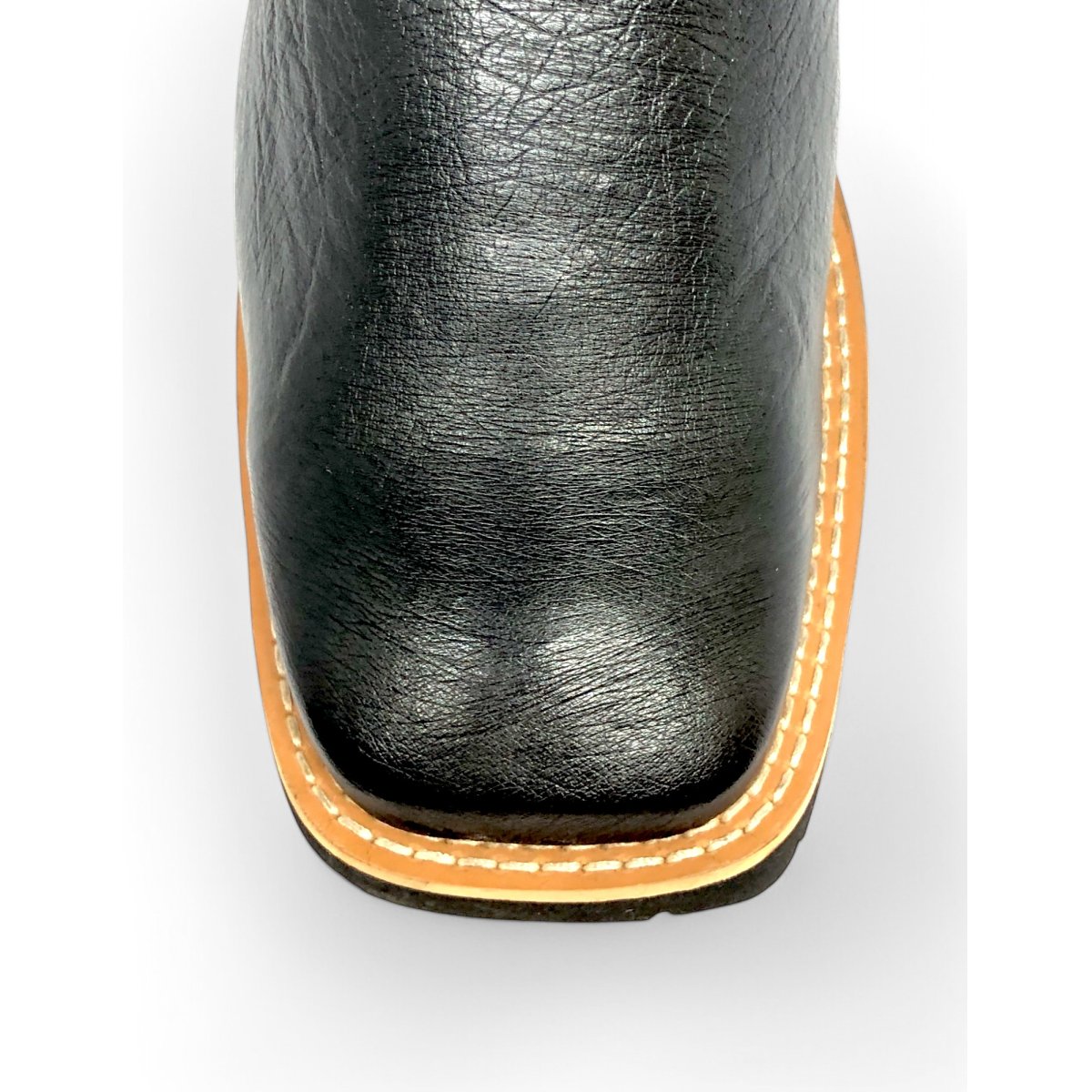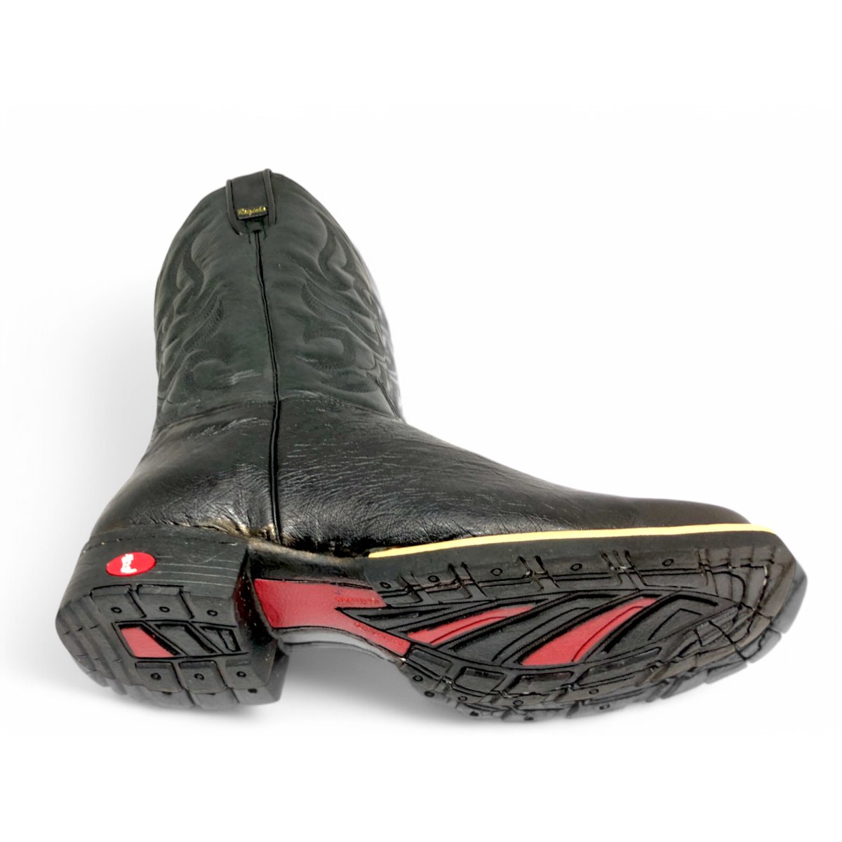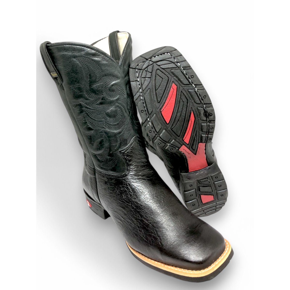Bota Texana De Couro De Barriga de Avestruz Preta - Cano Médio, Bico Quadrado - Solado Flex Comfort | Reizinho Botas