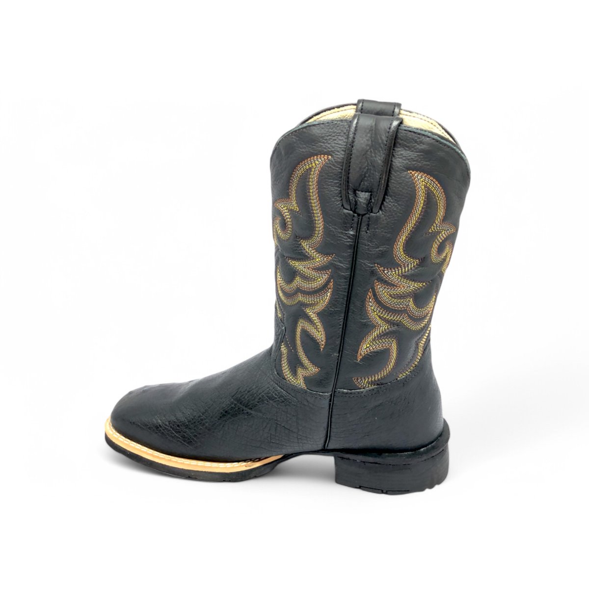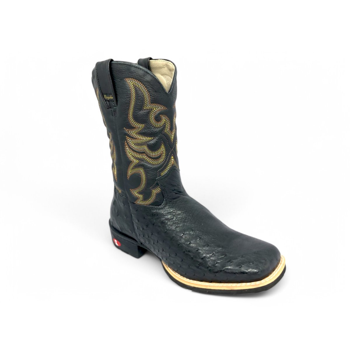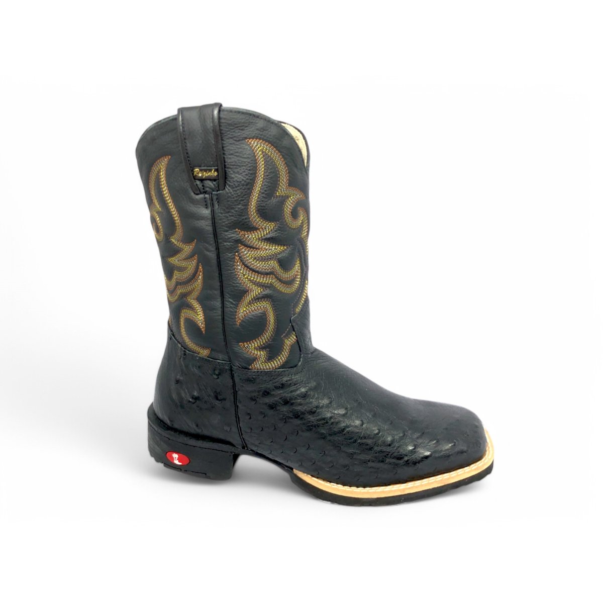 Bota Texana De Couro De Barriga de Avestruz Preto Metade Cheio - Cano Médio, Bico Quadrado - Solado Flex Comfort | Reizinho Botas