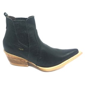 Tem o salto feito em couro com capa de borracha e acabamento colado e pregado com a sola de borracha e soleta de couro costurada e ponteada na frente.