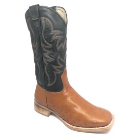 Coturno de Barriga de Avestruz Preta - Cano Curto, Bico Quadrado, Solado Flex Comfort
