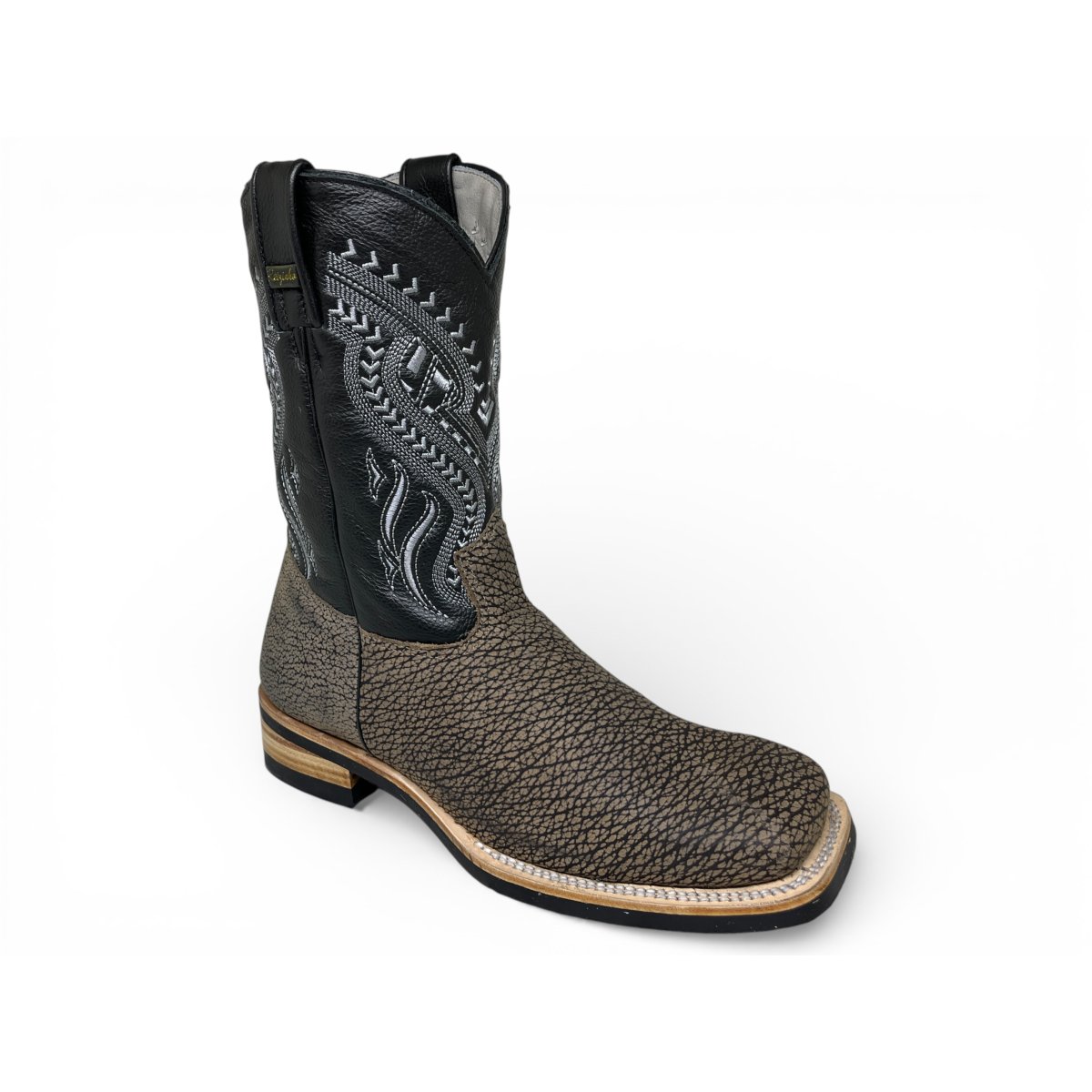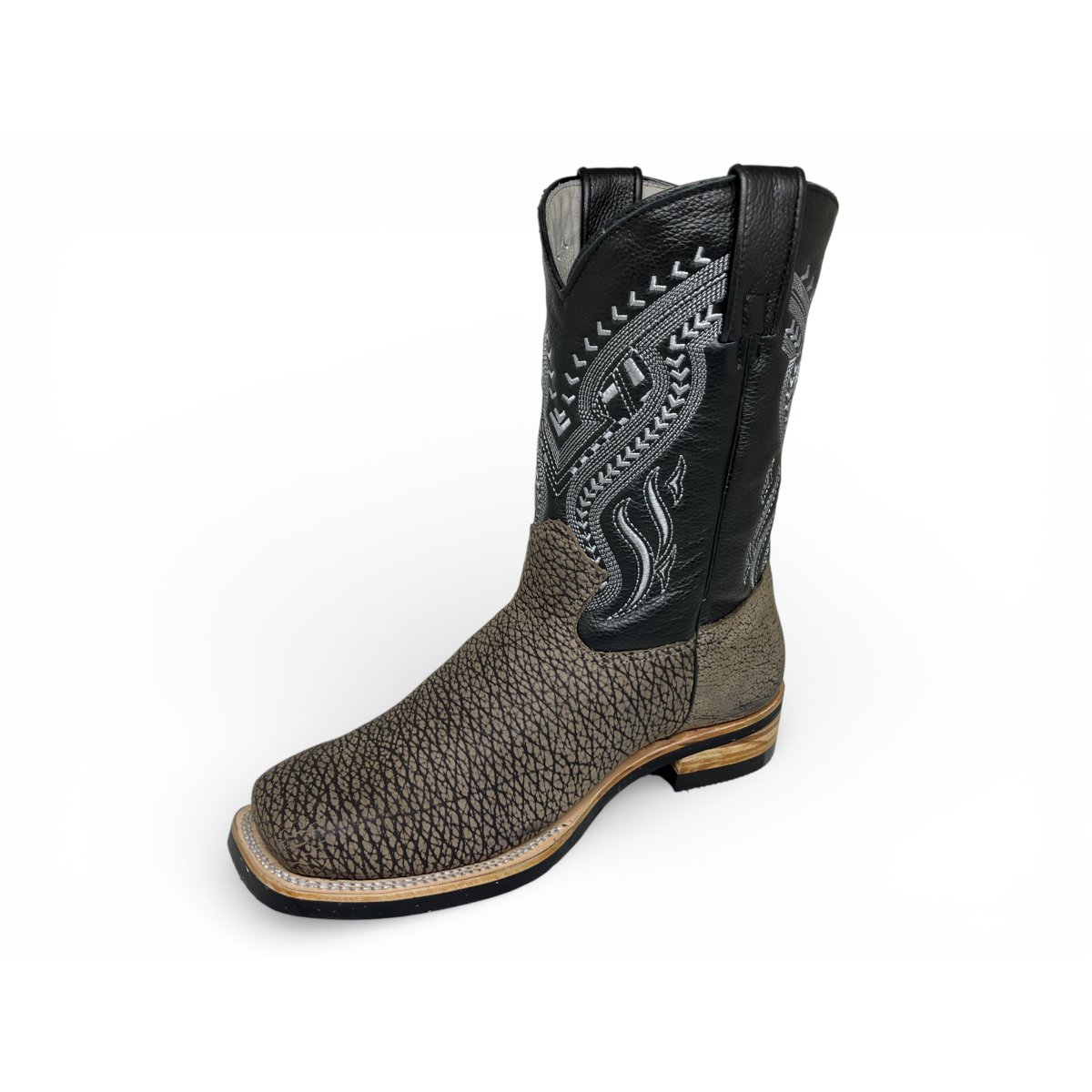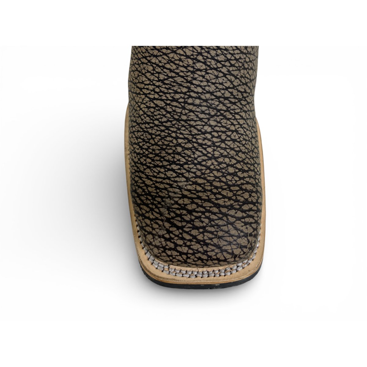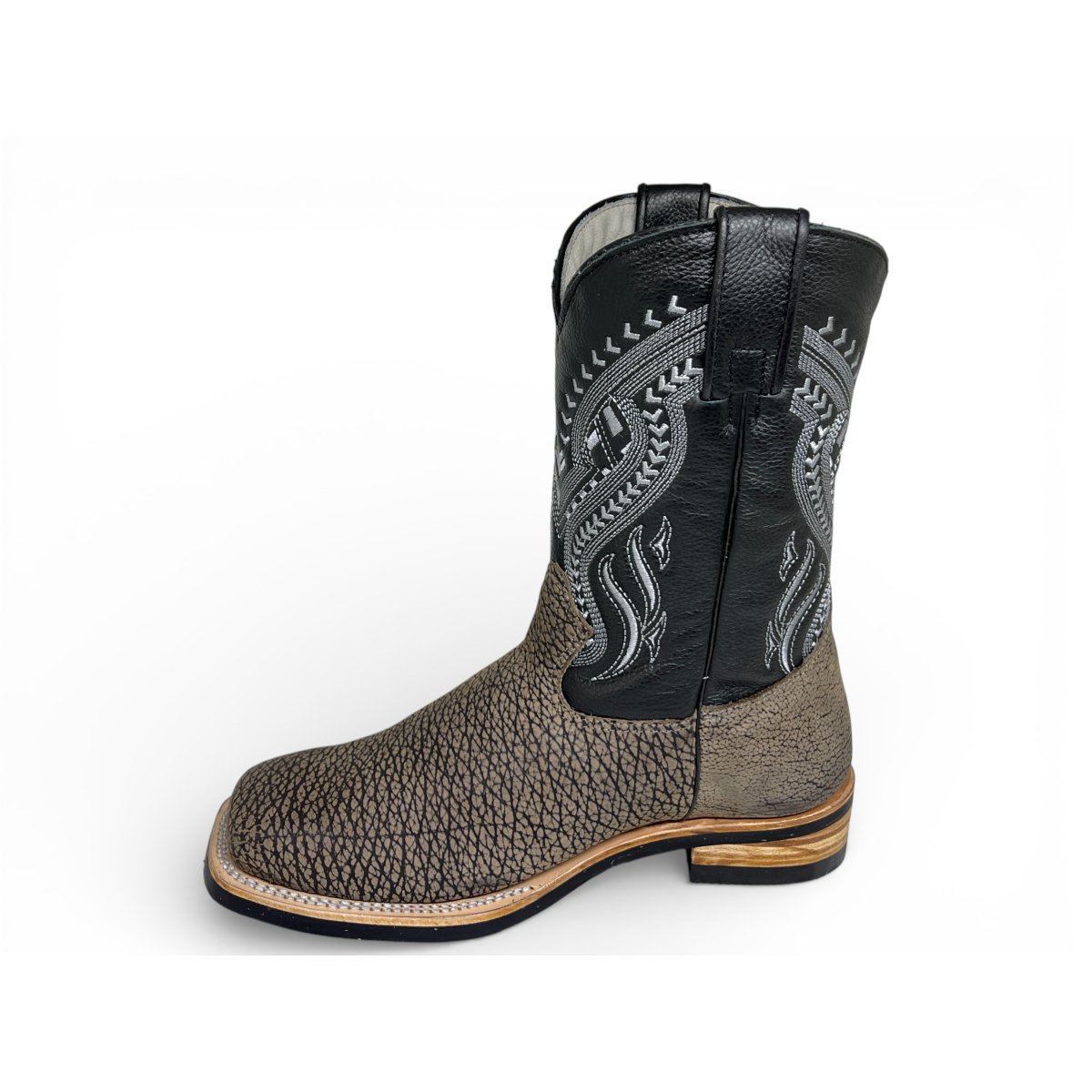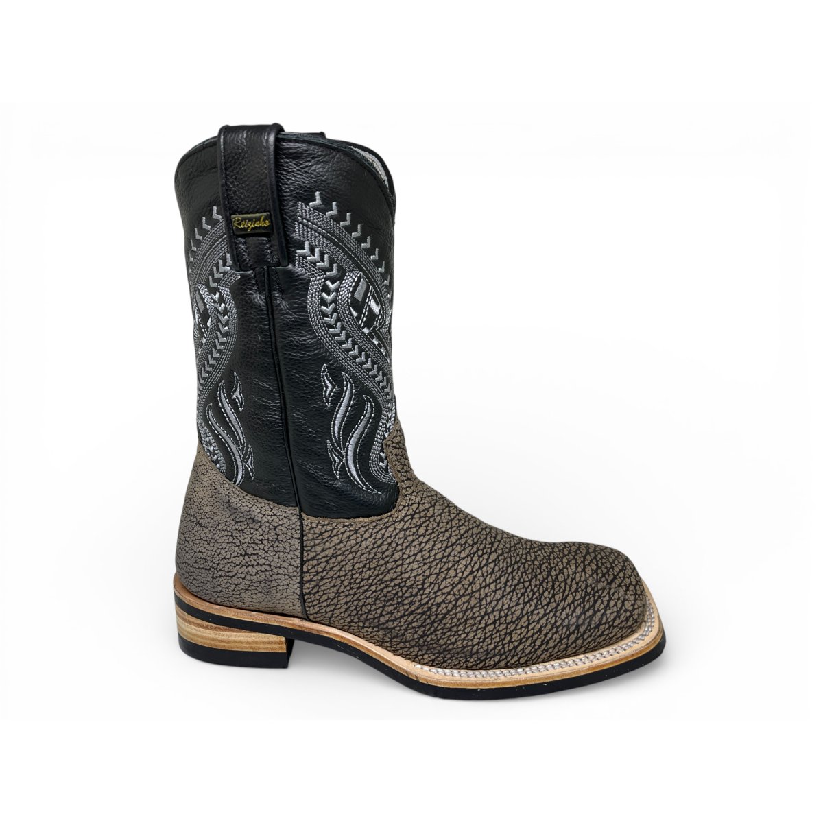 Bota Texana Reizinho Premium de Couro Legítimo de Bisão Cinza Stone - Cano Médio, Bico Quadrado - Solado X-Flex Artesanal | Reizinho Botas