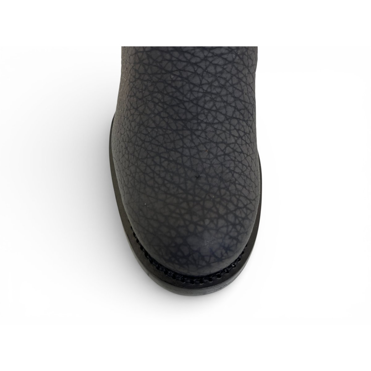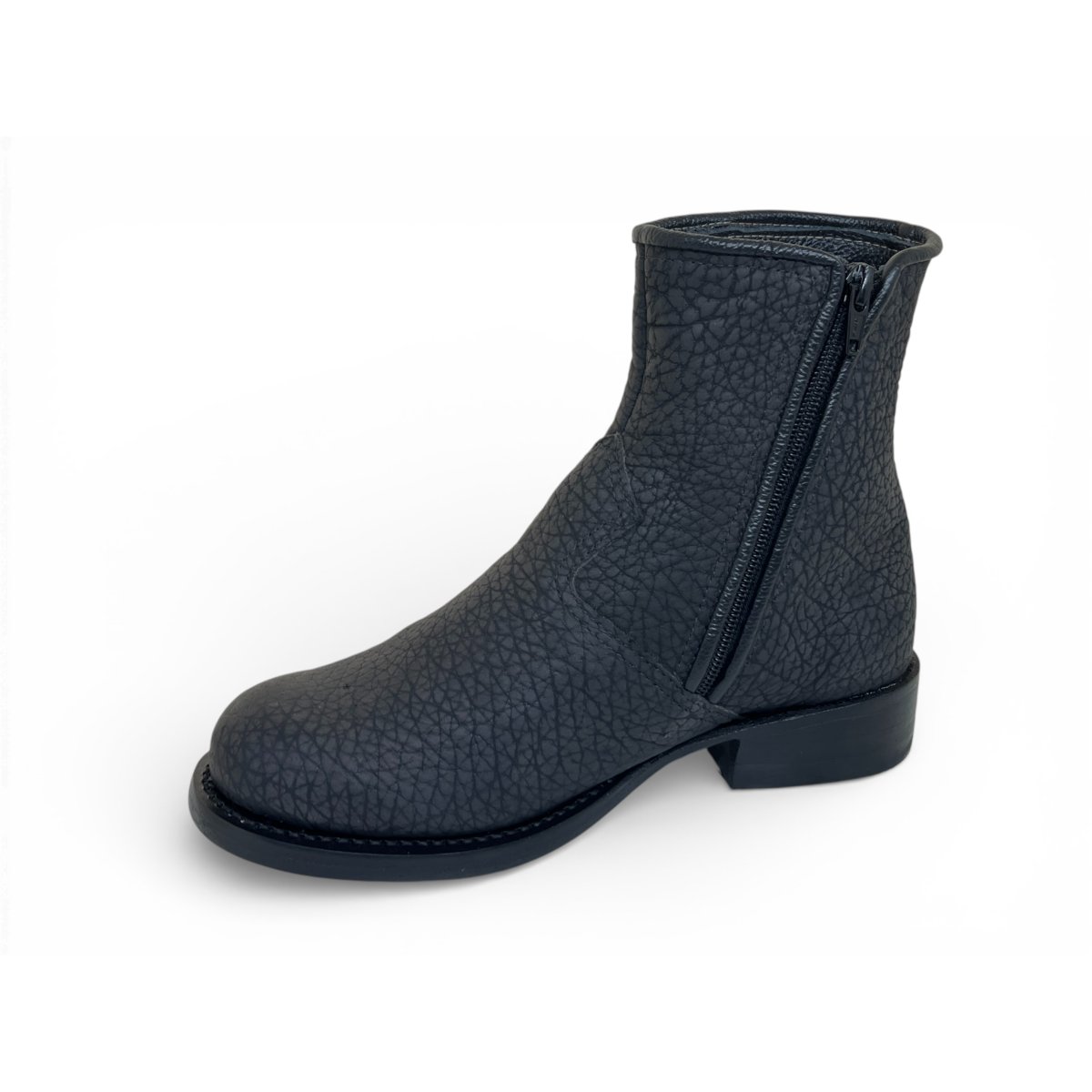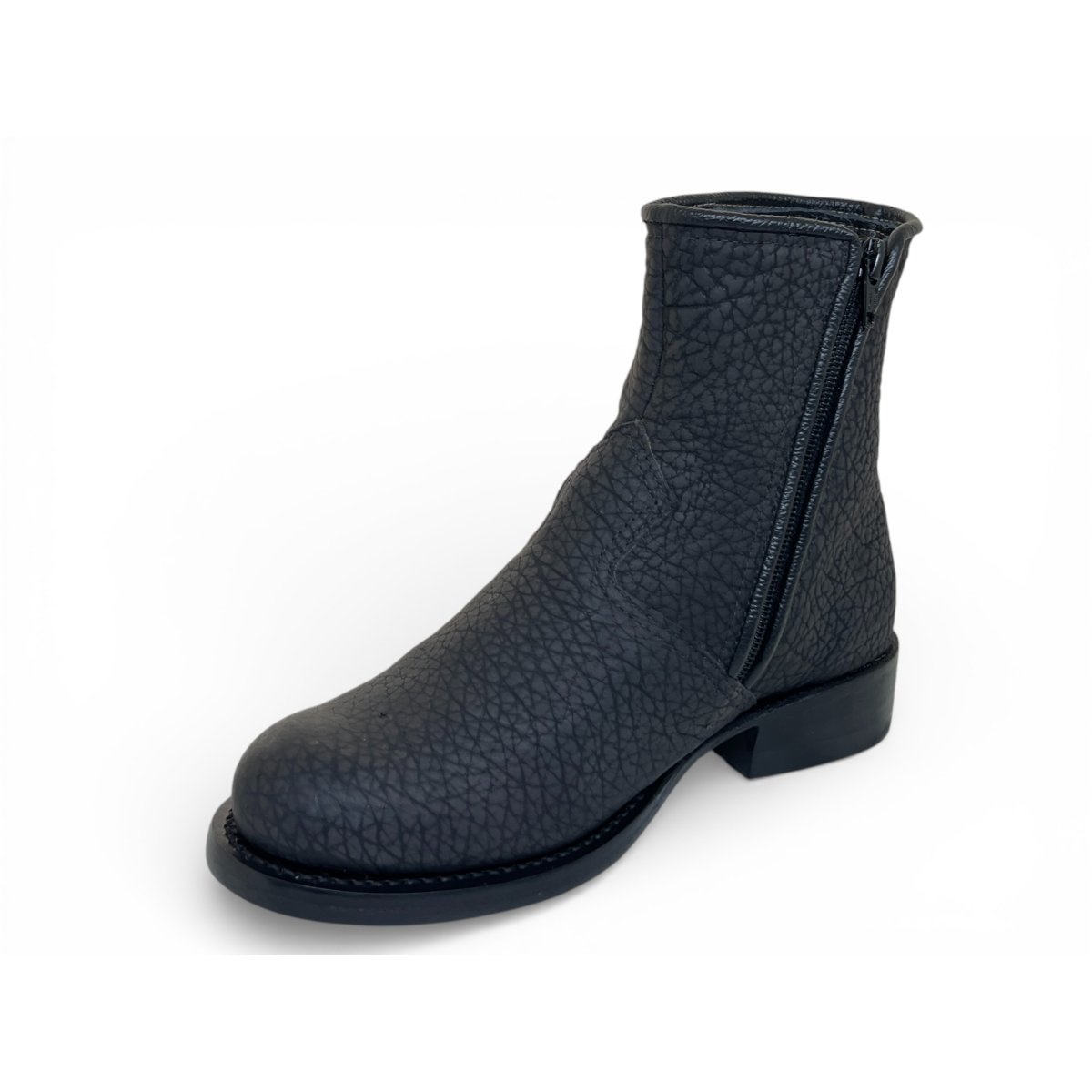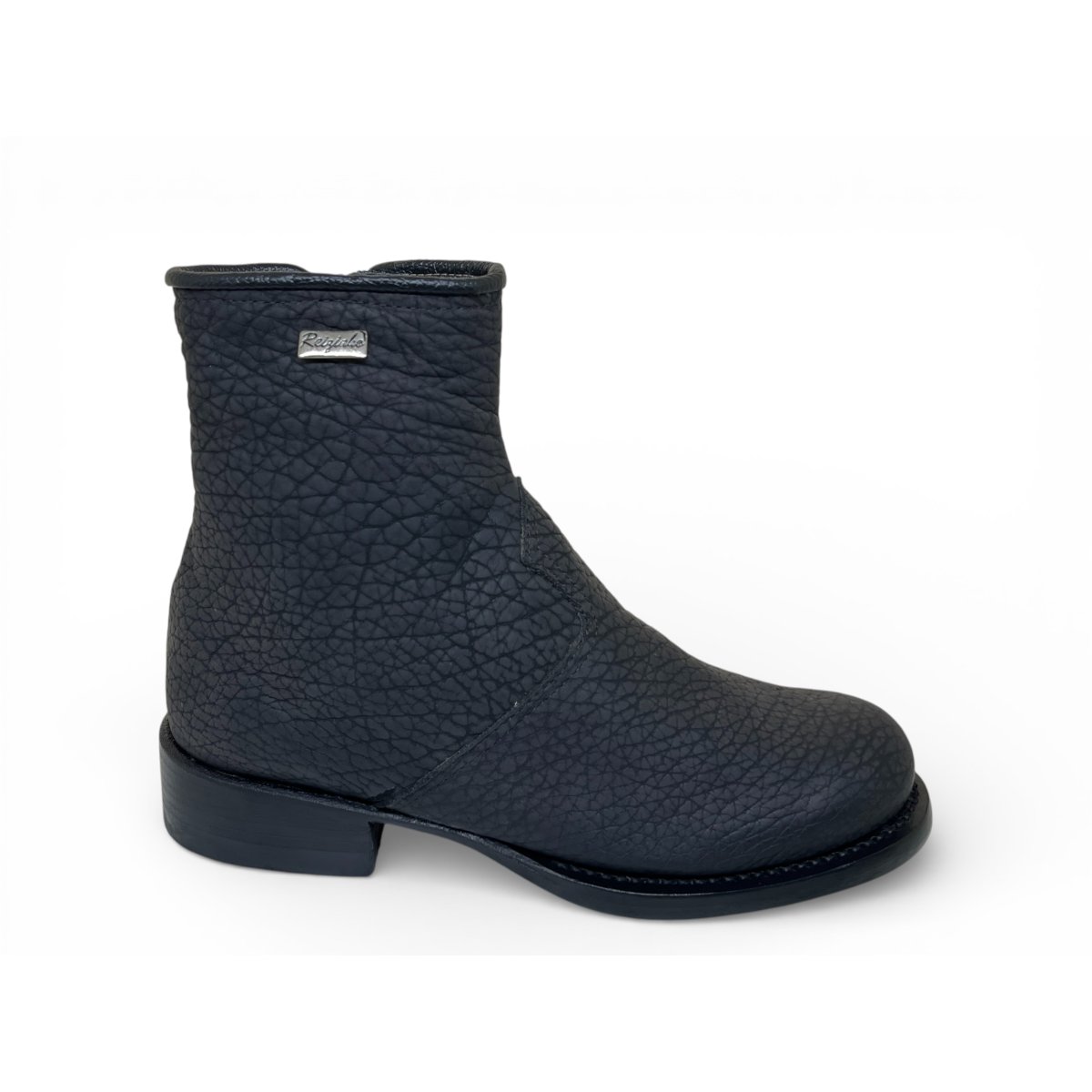 Bota Texana Reizinho Premium de Couro Legítimo de Bisão Preto - Cano Curto Zíper, Bico Redondo - Solado de Couro Artesanal | Reizinho Botas