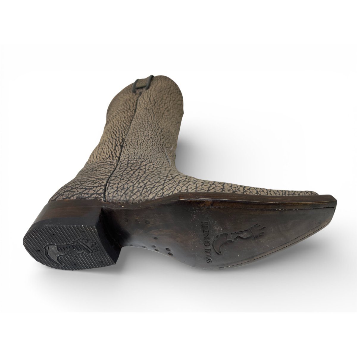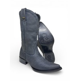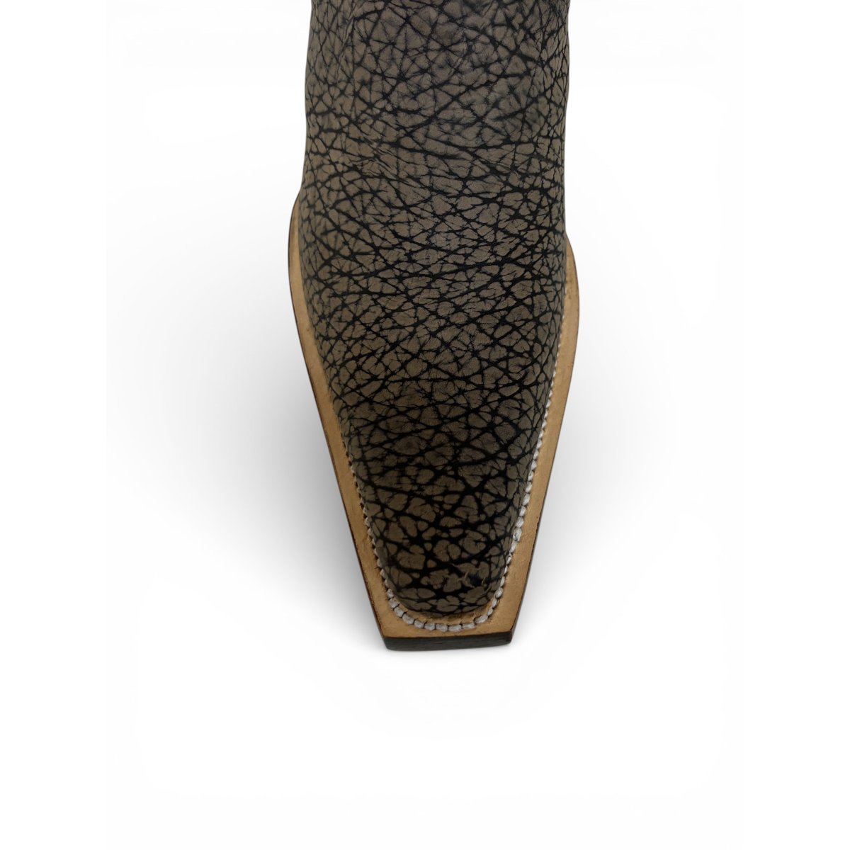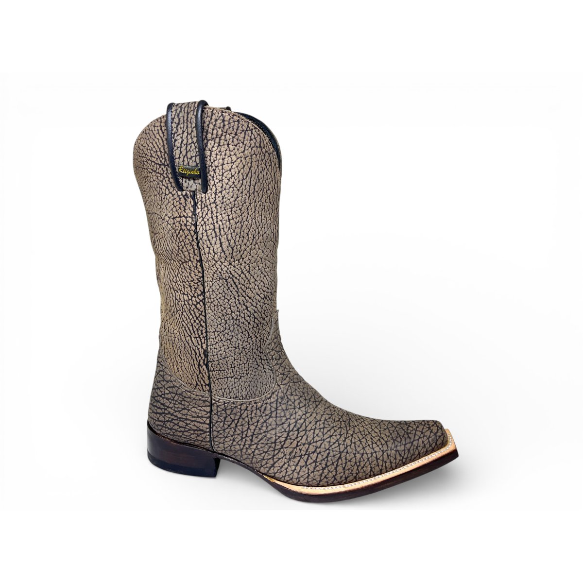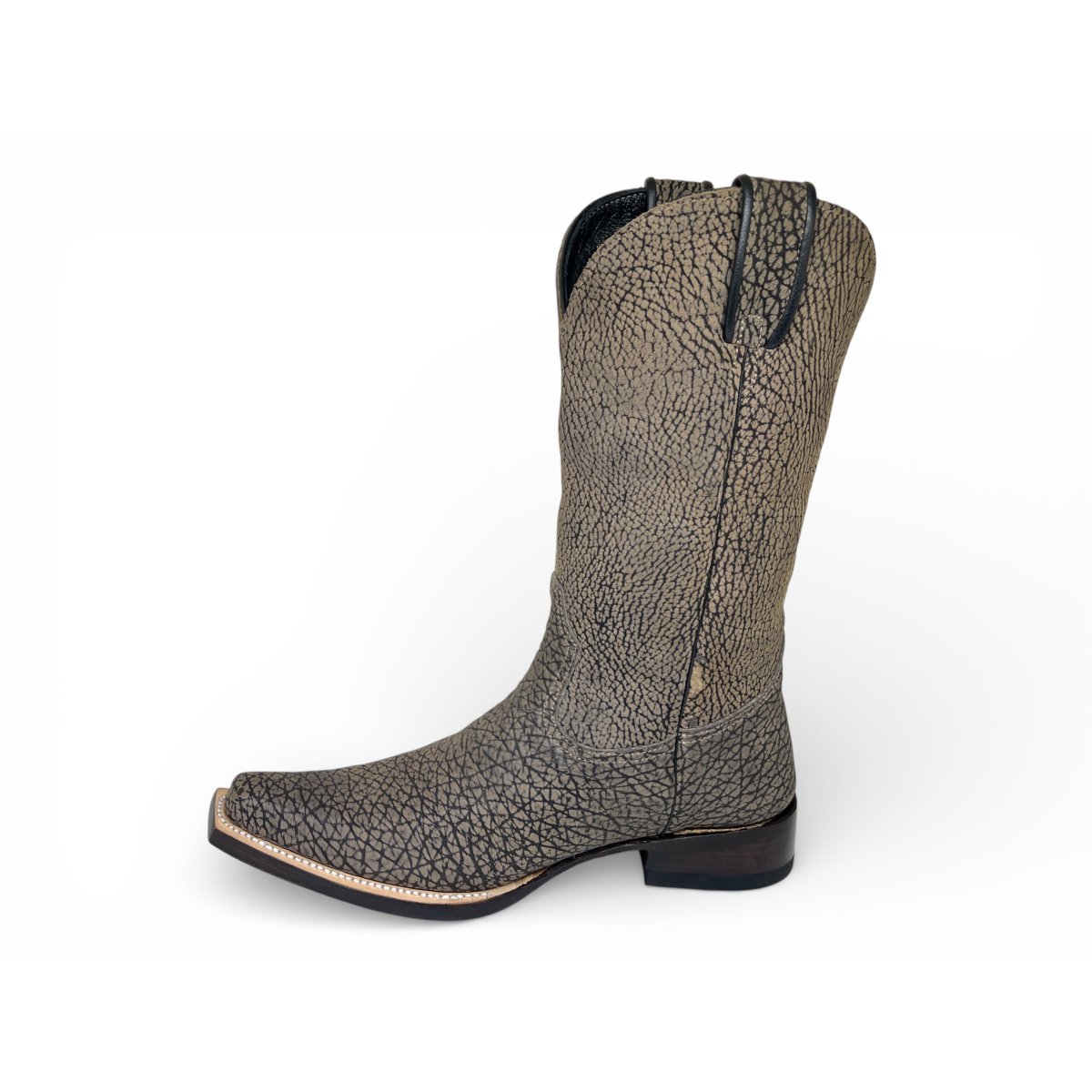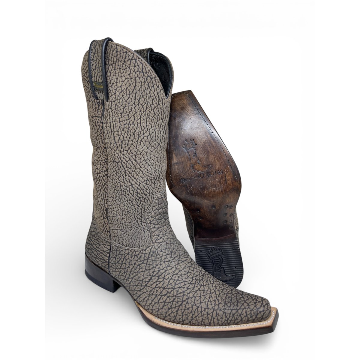 Bota Texana Reizinho Premium Inteira de Couro Legítimo de Bisão Cinza Stone - Cano Alto, Bico Fino Quadradinho - Solado de Couro Artesanal | Reizinho Botas