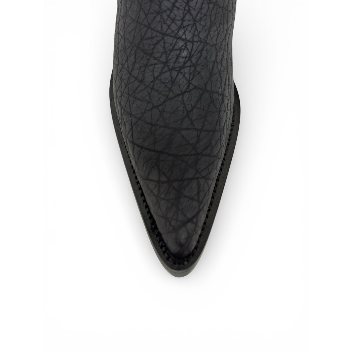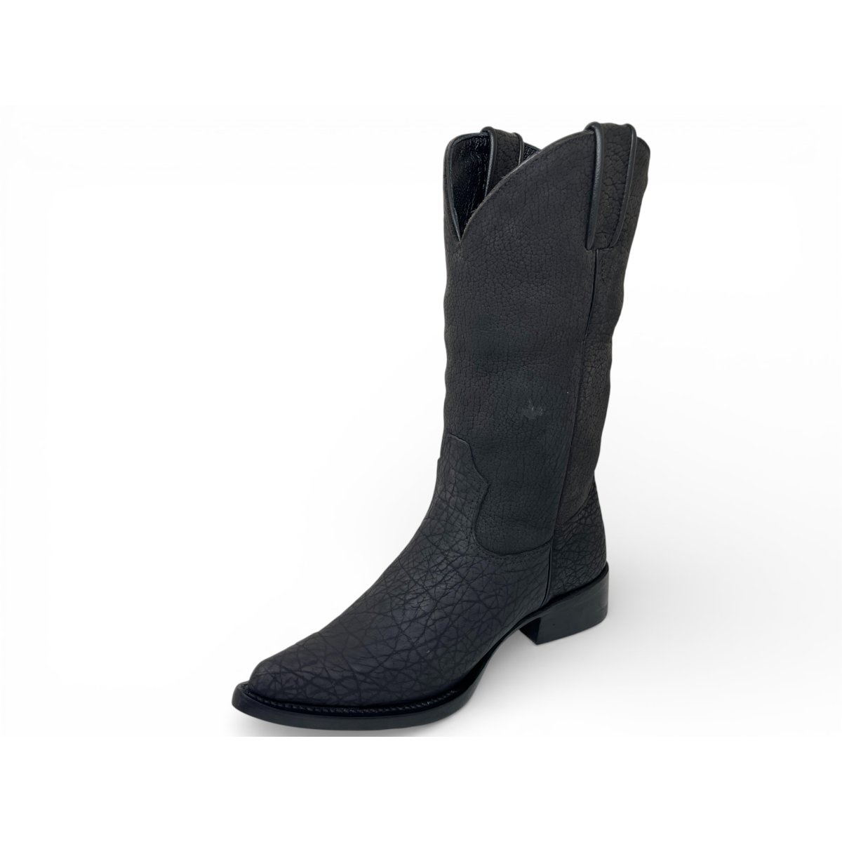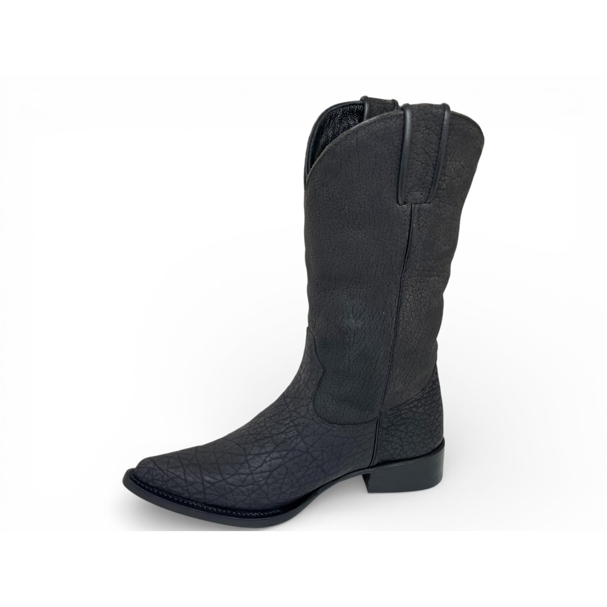 Bota Texana Reizinho Premium Inteira de Couro Legítimo de Bisão Preto - Cano Alto, Bico Fino Arredondado - Solado de Couro Artesanal | Reizinho Botas