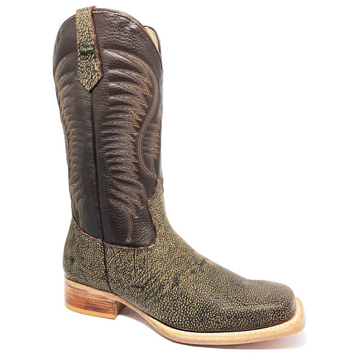 Bota Texana Reizinho Premium de Couro Legítimo de Búfalo Africano Black Cognac - Cano Alto, Bico Quadrado - Solado de Couro Artesanal | Reizinho Botas