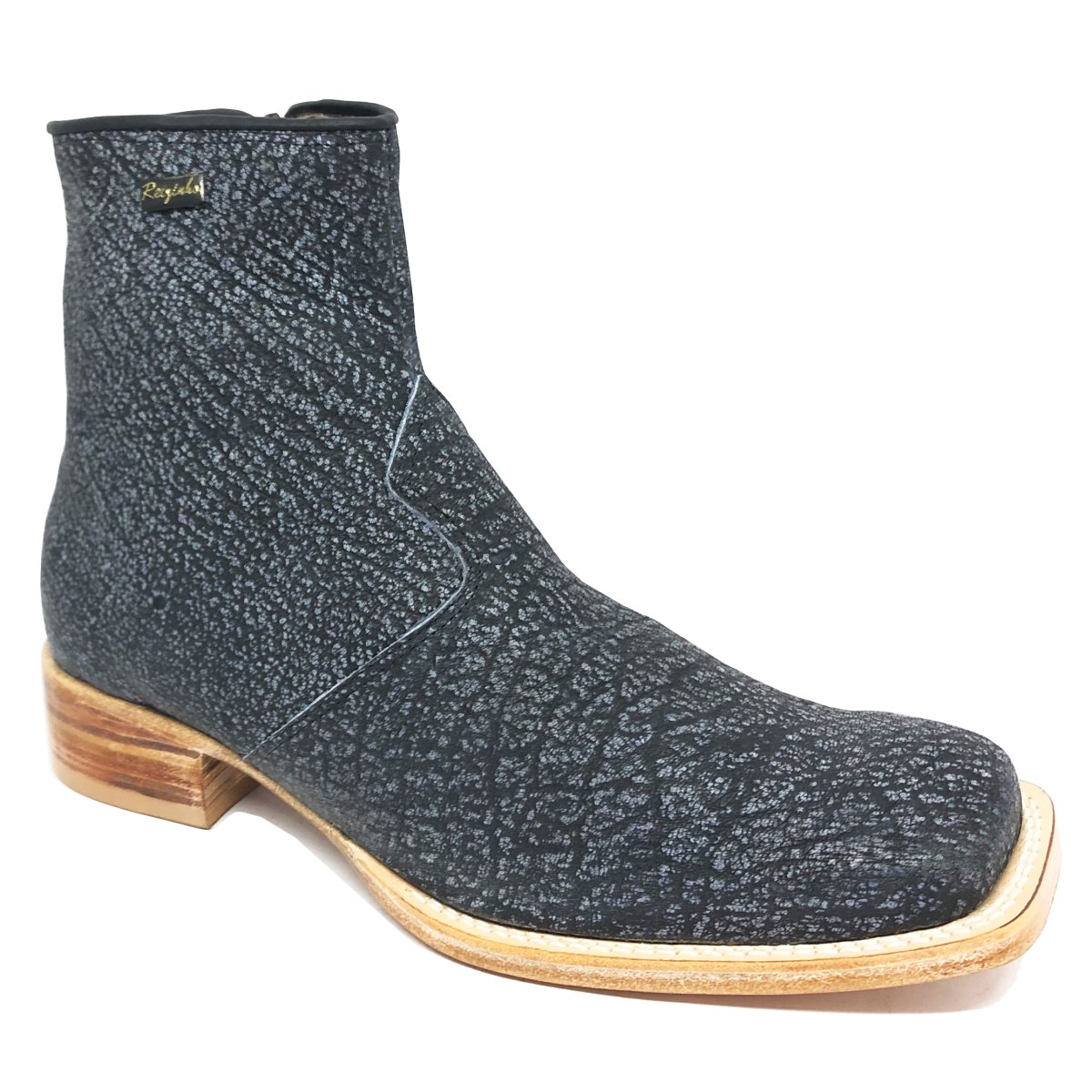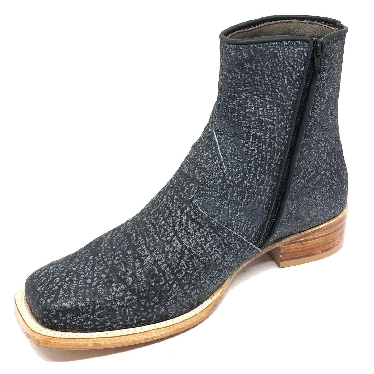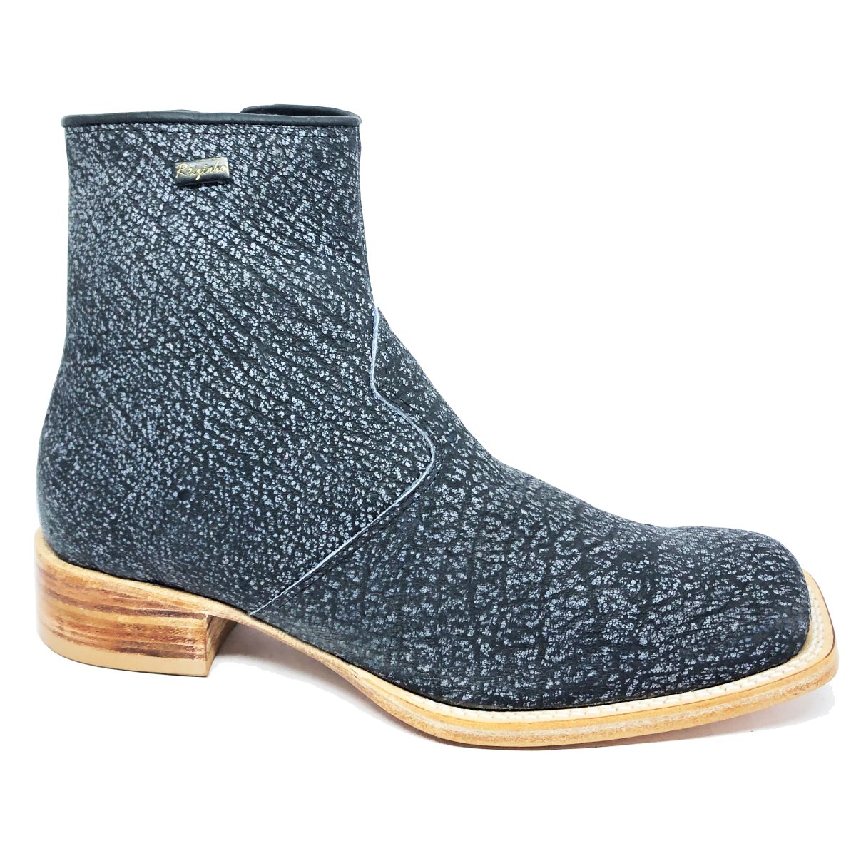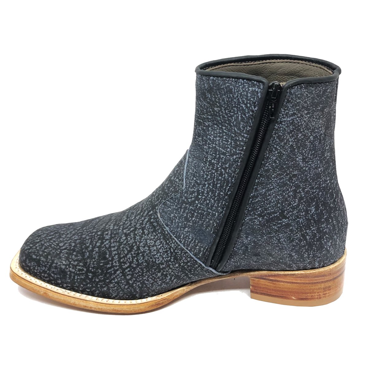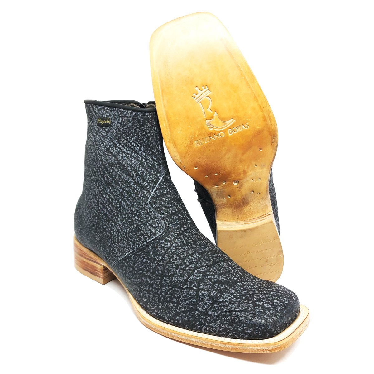 Bota Texana Reizinho Premium de Couro Legítimo de Búfalo Africano Stone - Cano Curto Zíper, Bico Quadrado - Solado de Couro Artesanal | Reizinho Botas
