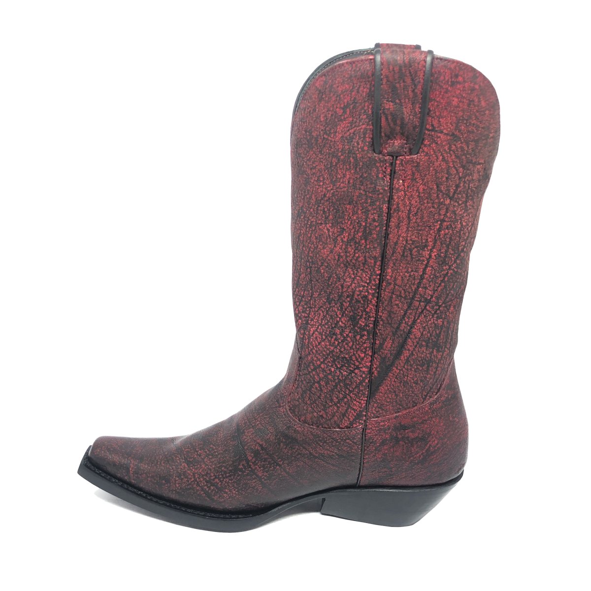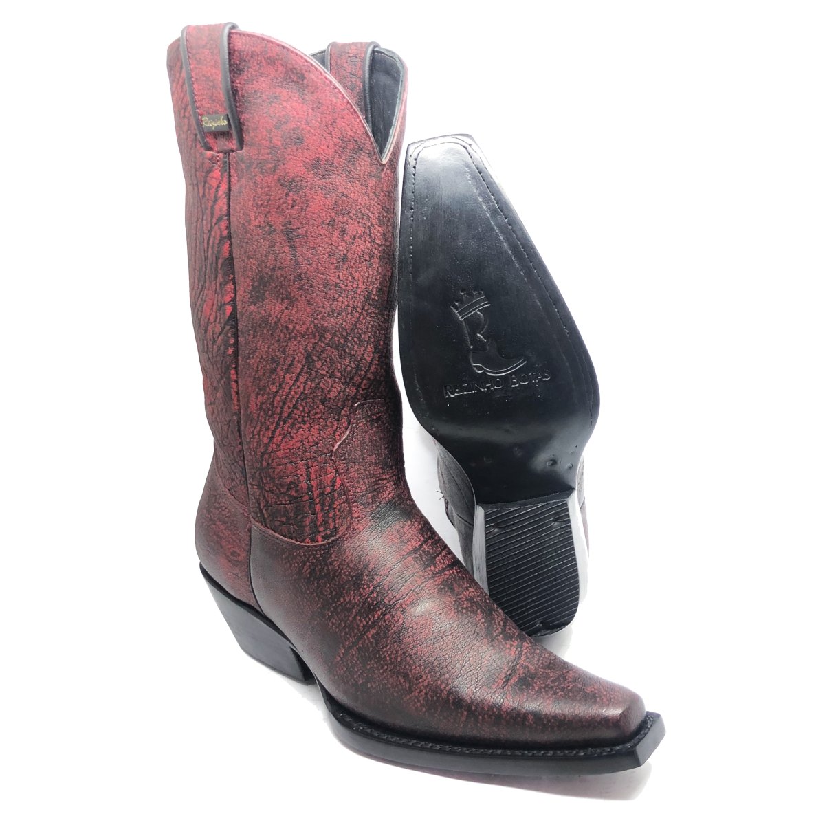 Bota Texana Reizinho Premium Inteira de Couro Legítimo de Búfalo Africano BloodWine - Cano Alto, Bico Fino Quadradinho - Solado de Couro Artesanal | Reizinho Botas