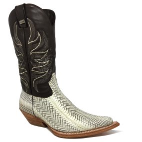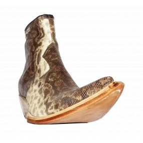 Bota de Cobra Naja Preta com Cabeça - CANO CURTO, BICO FINO, SOLADO DE COURO ARTESANAL