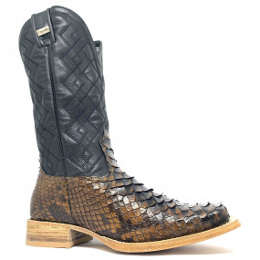 Bota de Cobra Python Natural - Cano Curto, Bico Fino Arredondado, Solado X-Flex Artesanal