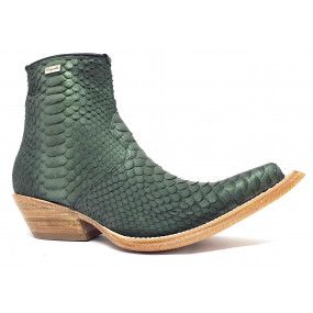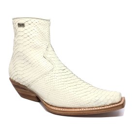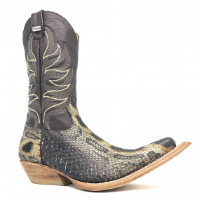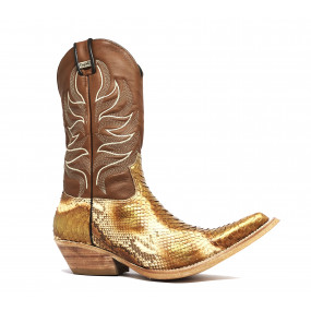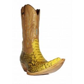 Bota de Couro de Cobra Python Girassol - Cano Alto, Bico Fino Inclinado, SOLADO DE COURO ARTESANAL