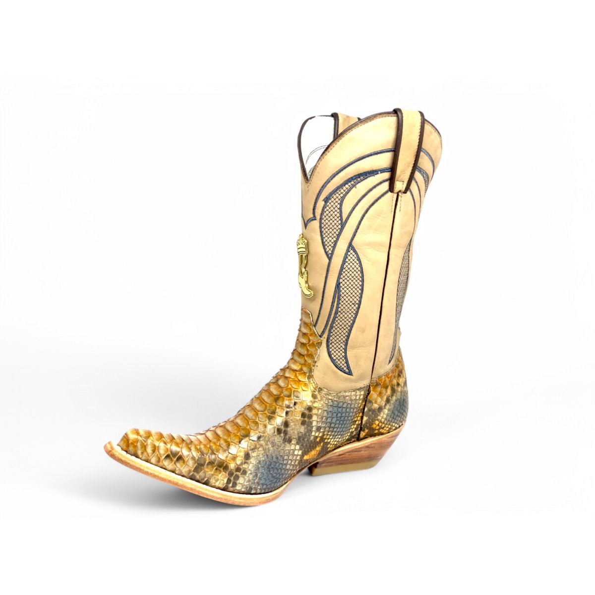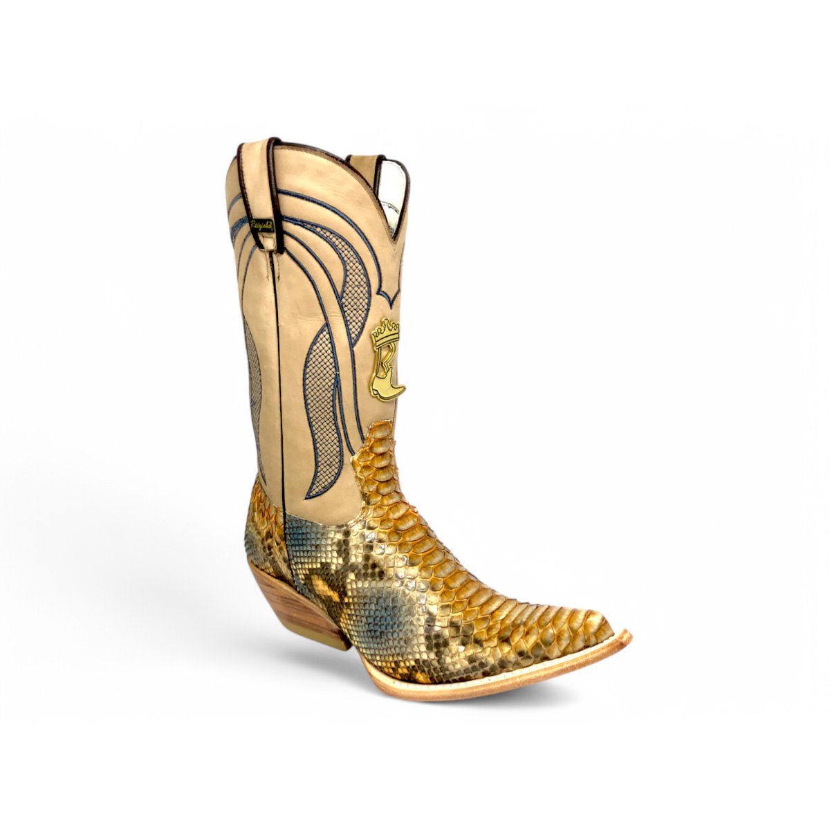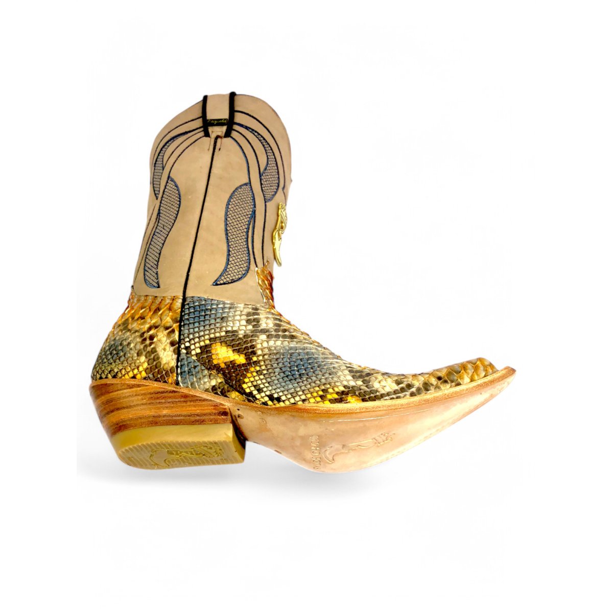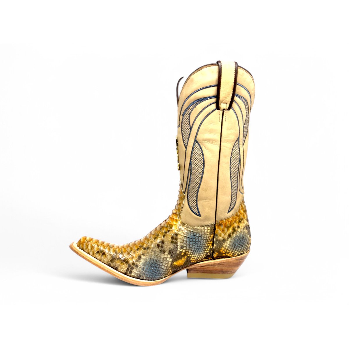 Bota Texana Reizinho Premium de Couro de Cobra Python Desert Blue | Limited Edition - Cano Alto, Bico Fino Inclinado - Solado de Couro Artesanal | Reizinho Botas
