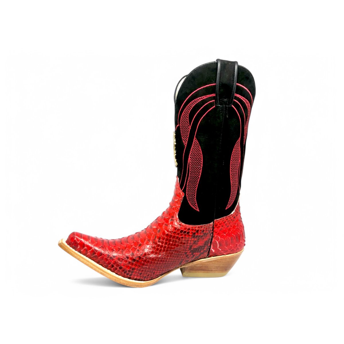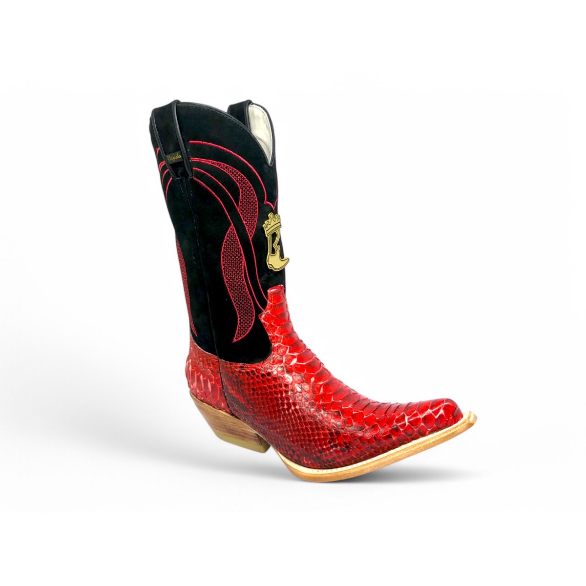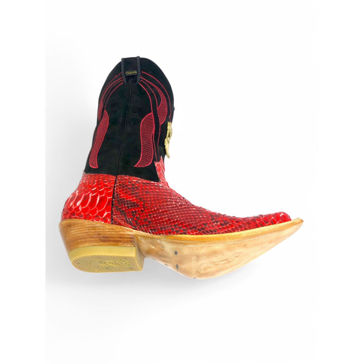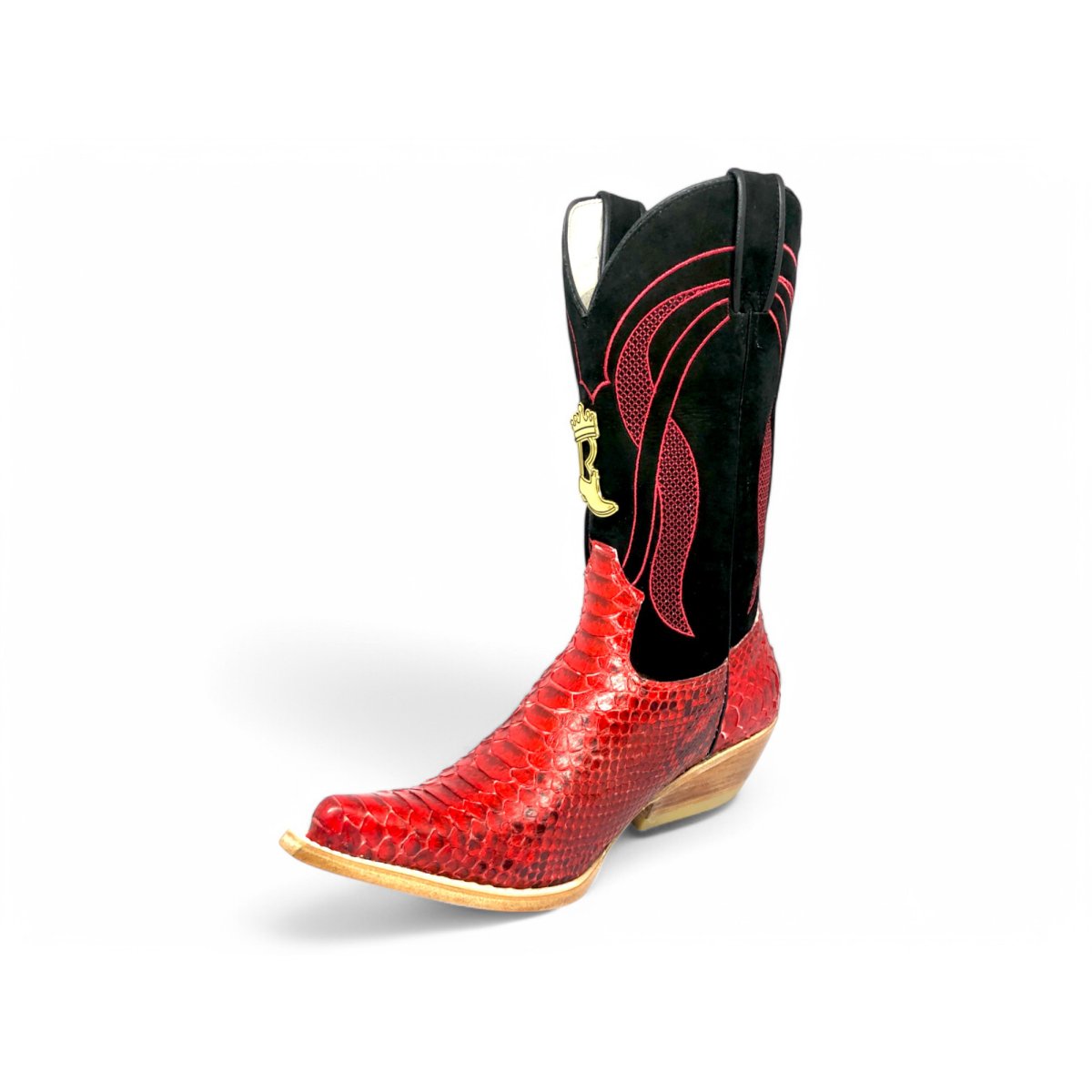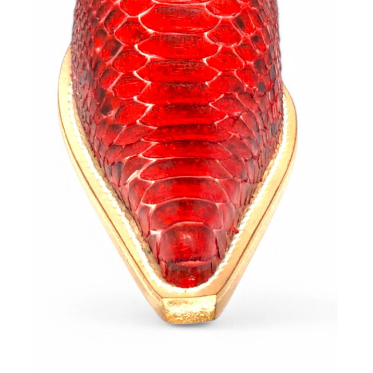 Bota Texana Reizinho Premium de Couro de Cobra Python Vermelha | Limited Edition - Cano Alto, Bico Fino Inclinado - Solado de Couro Artesanal | Reizinho Botas