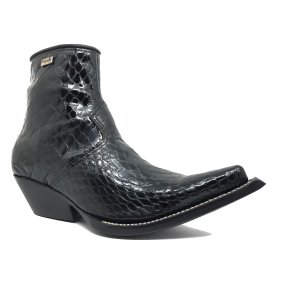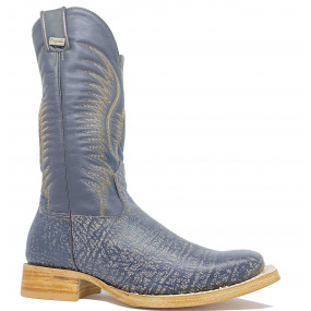 Bota De Couro Bovino Imitação De Cobra Blue - Cano Alto, Bico Fino Inclinado, SOLADO DE COURO ARTESANAL