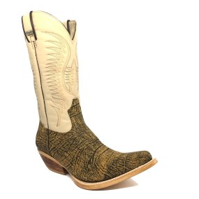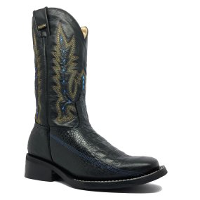 Bota De Couro Bovino Imitação De Cobra Blue Off White