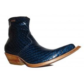Bota de Couro Bovino Imitação de Cobra Natural Topazio - Cano Curto, Bico Fino