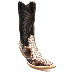 Bota de Couro Bovino Imitação de Cobra Preta - Cano Médio, Bico Quadrado, SOLADO X-FLEX ARTESANAL