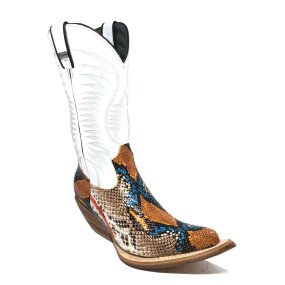 Bota De Couro Bovino Imitação De Cobra Royal Blue