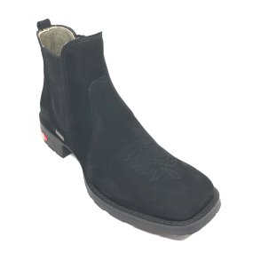 Bota de Couro Bovino Imitação de Elefante Black Cognac- Cano Curto, Bico Quadrado, SOLADO DE COURO ARTESANAL