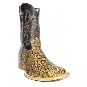 Bota de Couro Bovino Imitação de Jacaré Preto - Cano Alto, Bico Quadrado, Solado Flex Comfort