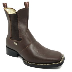 Bota de Couro Bovino Marrom Café - Cano Alto, Bico Quadrado
