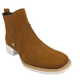 Bota de Couro Bovino Marrom Café - Cano Curto, Bico Quadrado, SOLADO FLEX COMFORT