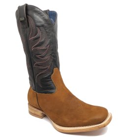 Bota de Couro Bovino Preto Old - Cano Alto, Bico Quadrado, Solado Flex Comfort
