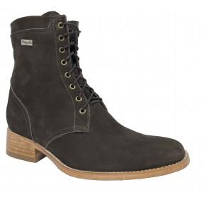Tem o salto feito em couro com capa de borracha e acabamento colado e pregado com a sola de borracha e soleta de couro costurada e ponteada na frente.